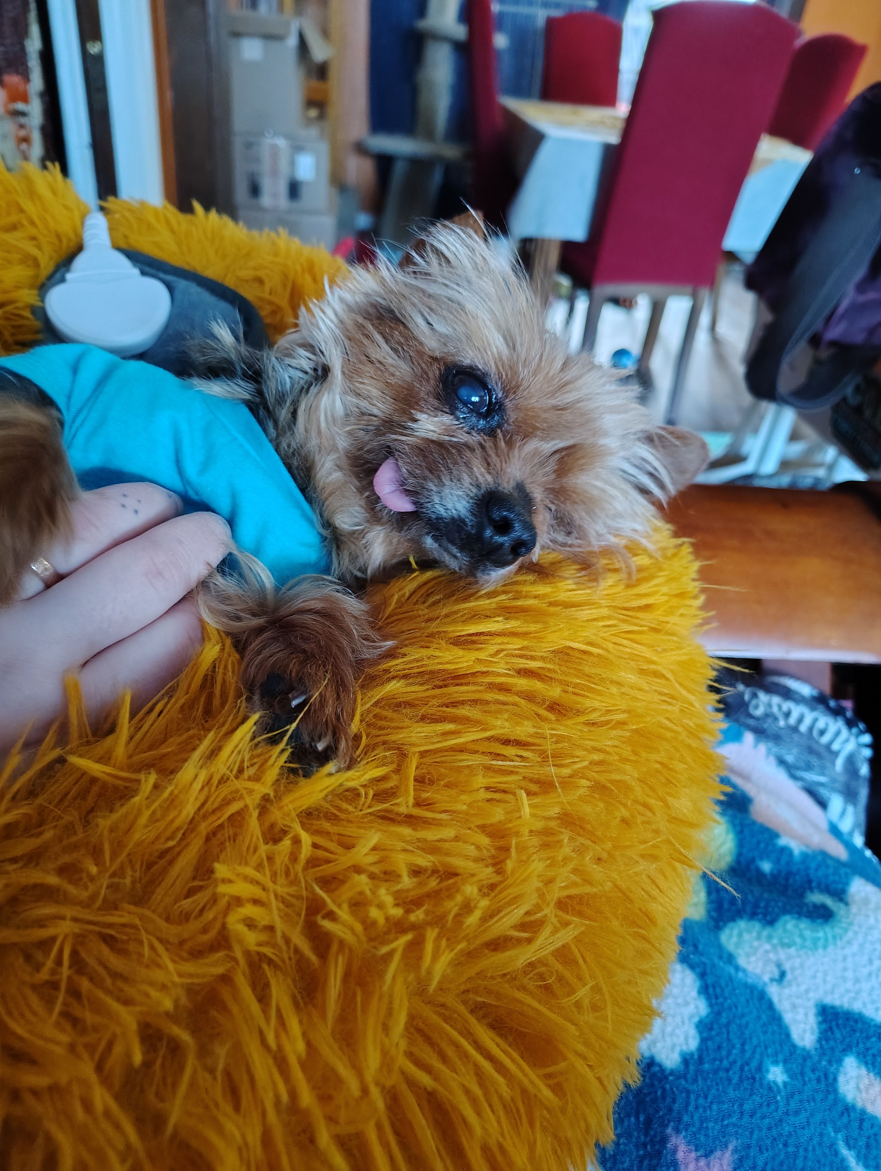 Cricket: 9-year-old Yorkie. Cricket is afraid of nothing and thinks she is just a very small German Shepherd and, despite being half his size, bosses Petey around. She is very friendly and loves people. She LOVES treats and following you around the house.